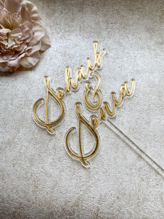 Gold 3D Cake Topper | Calligraphy Cake Topper | Couples Name Topper Cake | Couples Name Cake Topper | Anniversary Cake | Wedding Cake Topper Active