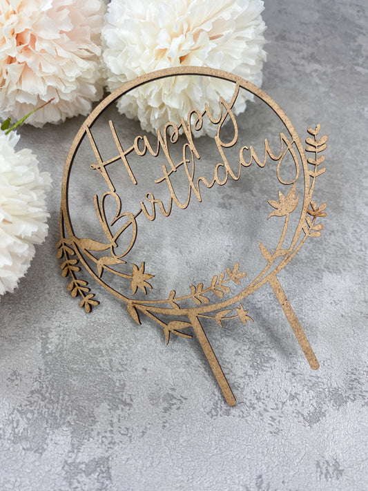 Floral Cake Topper | Birthday Topper | Wooden Cake Topper | Happy Birthday | Wreath | Floral Cake Topper | Rustic Cake Topper